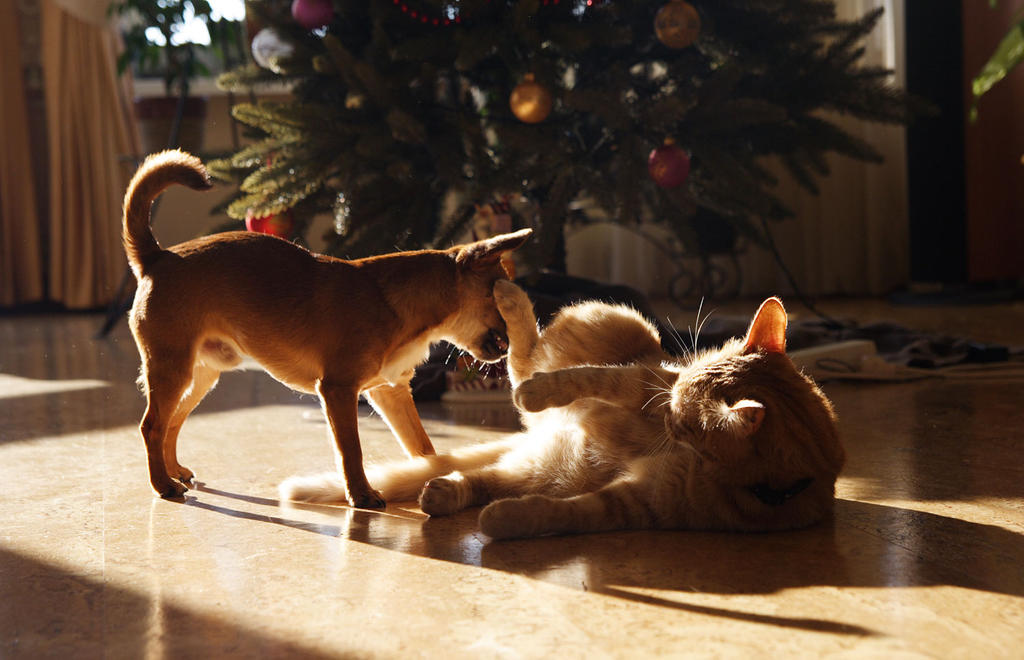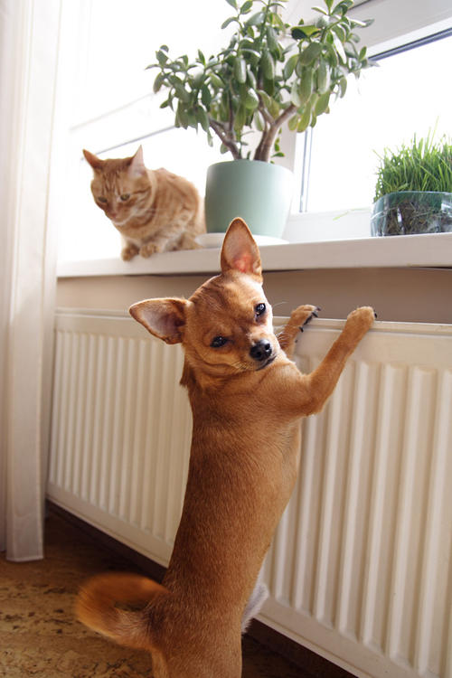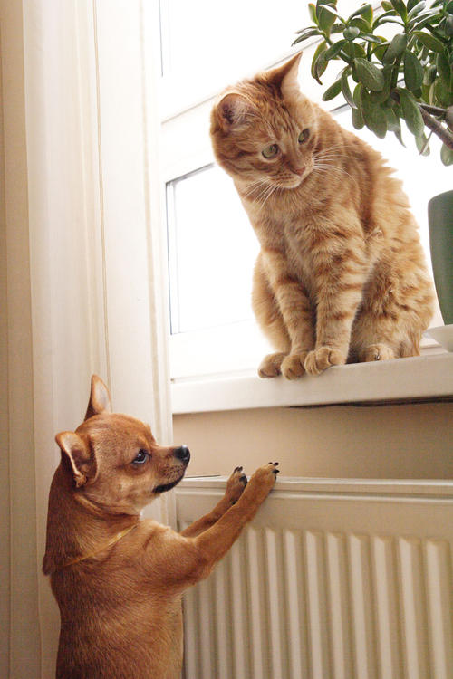 Интересно, что до сих пор у него меняется характер, поведение, отношения с окружающими. Что касается кота, то за последний месяц ситуация изменилась на диаметрально противоположную. Если раньше Поль безоговорочно признавал авторитет старшего, то сейчас он завоевал статус "главного", и уже так просто его не отдаст. Безумные игры в "прятки - догонялки", "вольная борьба" и "притащи кота за хвост" - любимые развлечения наших животных. И моя головная боль. Так как, не говоря о когтях, кот в 2 раза тяжелее. И постояно пытается спрыгнуть сверху на Полкана. Наверное считает, что это будет весело.