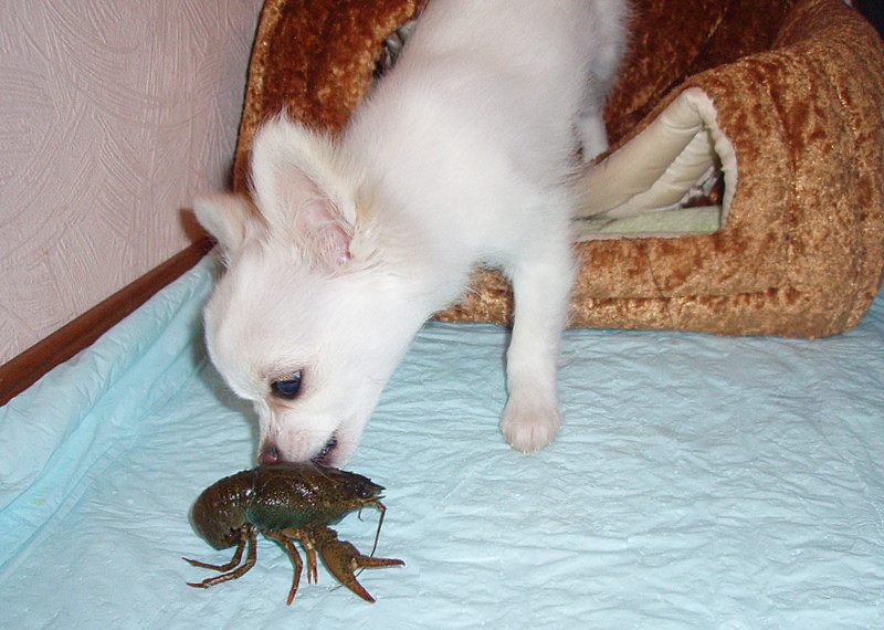 Здравствуйте. чихуательные наши!!! В воскресенье у нас состоялись бои без правил...ГРАНДик вступил в неравную борьбу с речными гадами. был смел и отважен как всегда...но не расчитав своей нежности получил укус от рака в свой кожаный носик. после чего боялся даже смотреть в сторону врага.Потом спрятался ко мне в кармашек и несколько часов проносила его как кенгурёнка))))))))