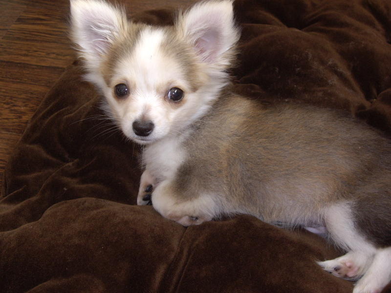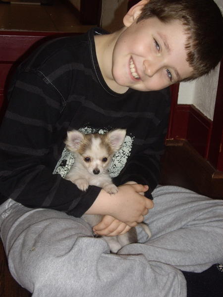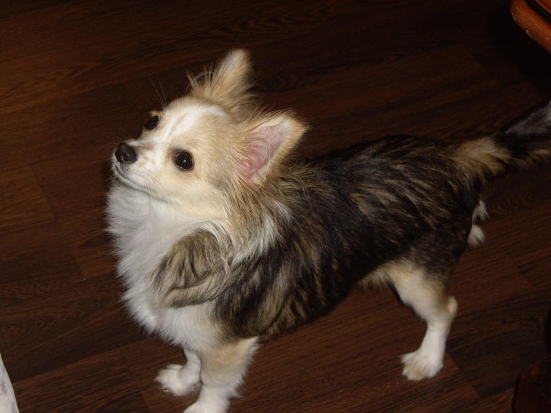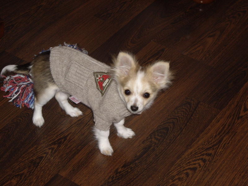 Здравствуйте все-все,кто на нас смотрит,и спасибо за приятные отзывы,Джанни родился 21 июля 2008, сегодня ему исполнилось ровно 7 месяцев,вес-1900,я думаю еще может прибавить 100-200 грамм, окрас у него действительно необычный, сначала он был серо-бежевый а сейчас шерстка стала длиннее и изменился цвет -рыжевато бежевый а концы черные ну и конечно белый воротник ,лапы и кончик хвоста.Характер у нас очень спокойный ,но любознательный и умный вообще он наш любимец,я раньше не представляла сколько радости может доставлять общение с собачкой