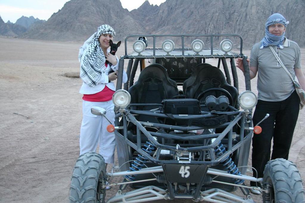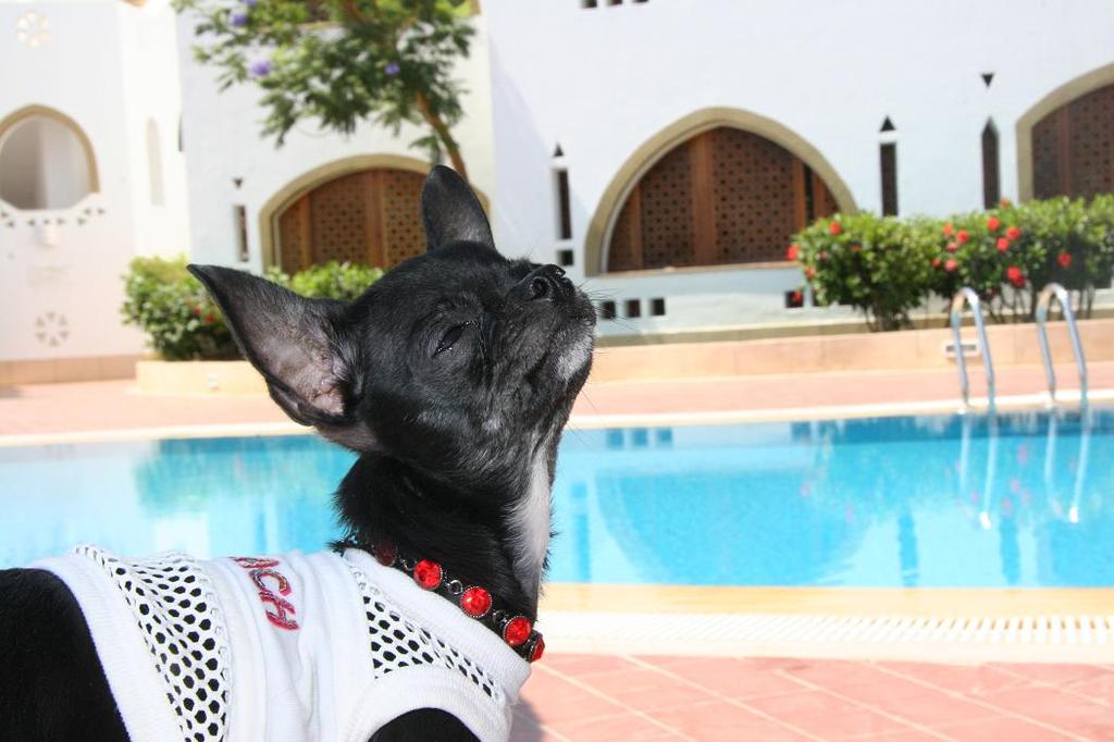 Сегодня, кстати, ездили встречать рассвет в пустыне. Собака, конечно, в сумке. Носились на джипе, она сидела спокойно. На обратном пути высовывала голову и смотрела по сторонам. Но я побоялась, что песок ей в глаза попадет, и засунула ее обратно. А так - нормально все прошло. Единственно, - пришлось от квадрациклов отказаться из-за собаки. А так она осмелела вообще и почувствовала кайф от прогулок. Все обнюхивает, даже про наше существование забывает иногда и может отстать, когда мы гуляем по отелю. Отель очень большой. Больше я с собакой на руках в рестораны не входила, так что неприятных эпизодов пока удается избегать. За исключением одного случая, который я в теме "сколько стоит ваша собака" описала.