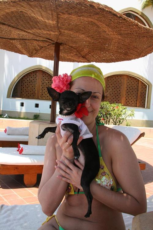 Девчонки, привет! Купили еще один день интернета и, - вот я с вами! Наш отпуск подходит к концу. Теперь можно сказать, что он удался. Правда хочу сказать, что если вы хотите побыть наедине с мужем, не берите с собой собаку - все внимание будет принадлежать ей. По крайнем мере у нас так получилось. :smile: Правда постепенно она освоилась, привыкла к людям и стало возможно оставлять ее без пристального внимания. Не на долго... :wink: Как я уже говорила, вокруг нас на пляже много доброжелательных собачников и прочих добрых людей. Но недавно приехали 2 странные особы - мать с дочерью. Как-то раз они ходили в кабинку переодеваться. Юика бегала рядом, я за ней присматривала. И вдруг вижу такую сцену: девушка выходит из кабинки, Юика поворачивается в ее сторону и производит один гавк. Девушка начинает визжать, как ужаленая, орет: "Пошла вон!". Юика в шоке прижимает уши. Подбегае ее мамаша, начинает махать на собаку полотенцем, орать и топать. Я подбежала, едва спасла от них малышку! Я все понимаю, что есть люди, которые собак боятся и все такое. Я только одно не понимаю, почему нельзя мне просто сказать, чтобы я забрала собаку? Я была в 2-х метрах от них! Зачем устраивать такую сцену? Взрослые же люди! Причом довольно крупного телосложения, мягко говоря. Короче, мы теперь внимательно следим, чтобы собака к ним не подходила. Это довольно сложно, ведь все остальные вокруг стараются подозвать ее к себе, посюсюкать... Вот такая история. Вроде ничего особенного не произошло, но неприятный осадок остался... А вот, как наша девочка проводит время: