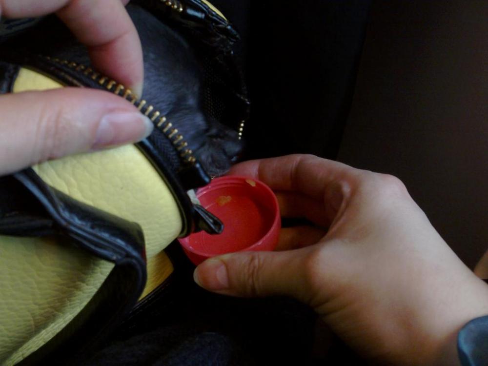 Оля, такая моська смешная из сумки торчит!!!)))