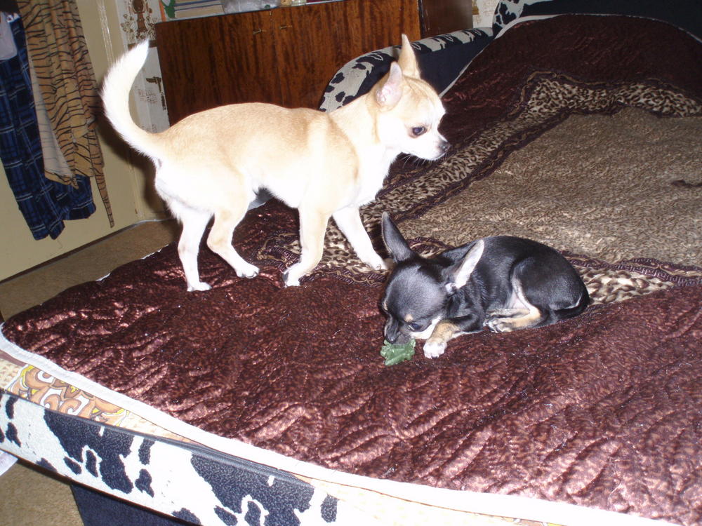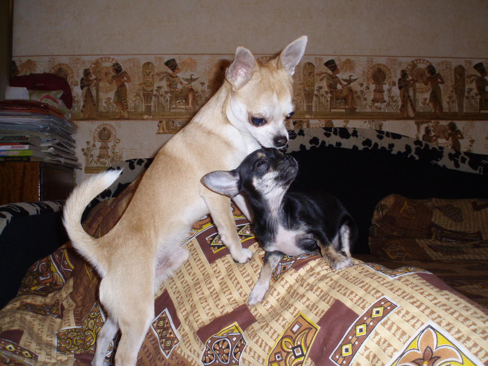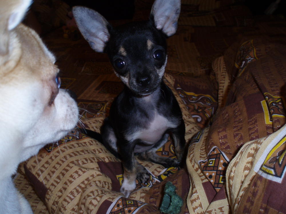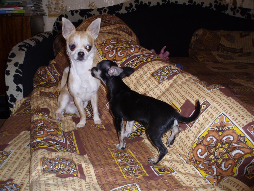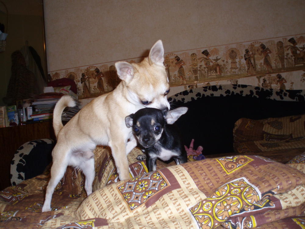Мы приучены к туалету и уже сами поняли куда надо бежать по своим делам. С Бучиком нашли общий язык сразу, он сначала два раза прорычал, я ему объяснила, что свои, и теперь, о, как умильно, я в восторге, он отдает ей все свои игрушки.А малышка лижет его в нос, надеюсь, что крепкая дружба между ними завяжется скоро. Фотки в стойке выложу позже, пока не хочу малышку мучить, пусть превыкает.