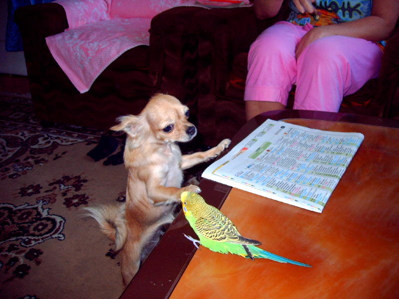 Какие отношения складываются у вашей Клепы с попугаем??