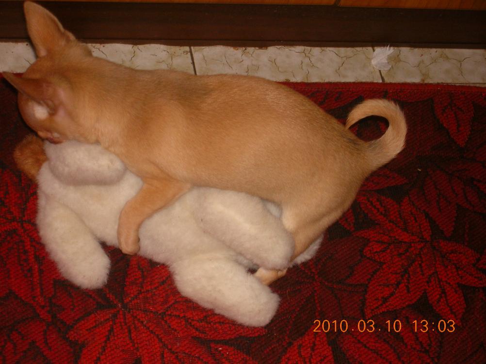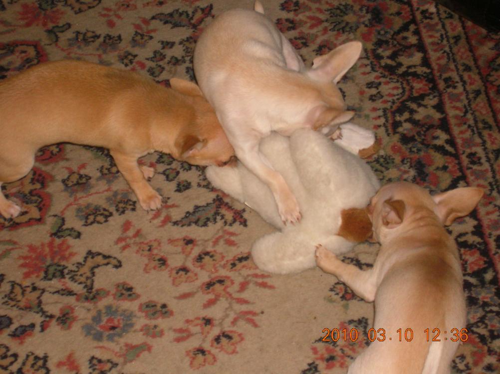 Игрушку по полной программе донимает Рокси, остальные только треплют.