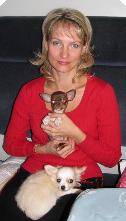 Передала щенка встречающим, сразу прыгнула в метро и в "Королевство гномов". Собиков там - тьма. Они как выскочили и все давай гавкать на меня. Малюски смешные, вертлявые. Их когда много - впечатление незабываемое. Сфотографировала маму Греты, она была такая грустная