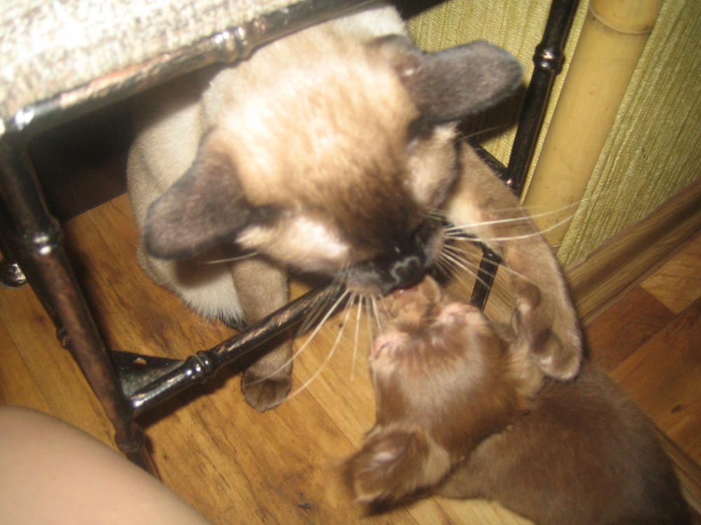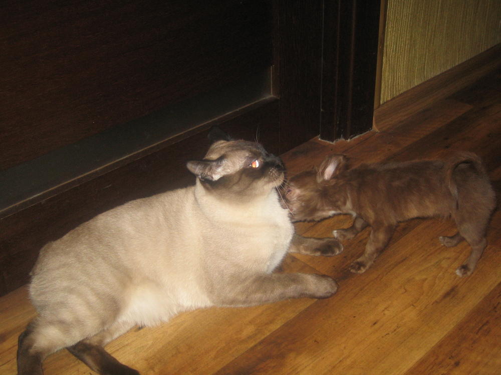 Вау! фотки-прекрасные-перелесть! А котик-то сиамский,а как дружит с чишкой! У меня у тетки сиам-12 лет-злющий-но один из немногих котов играет с моими чишками-залюбуешься! :clapping: :clapping: :clapping: