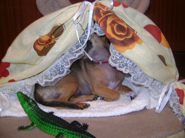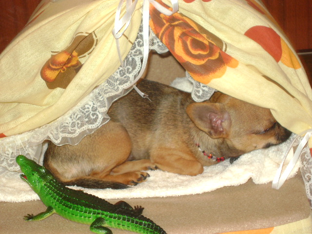 Вот купила Лилу домик,даже сама не ожидала,но она его полюбила!Правда на ночь все равно пока просится ко мне:wink:
