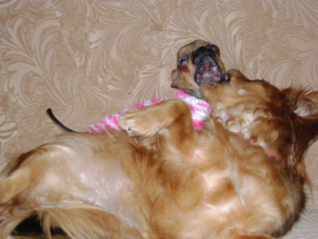 А носок то как ей к лицу,т.е. к мордочке)) Главное-здоровье)) А с нарядами вы потом разберетесь)) Такую девушку наряжать -одно уовольствие))