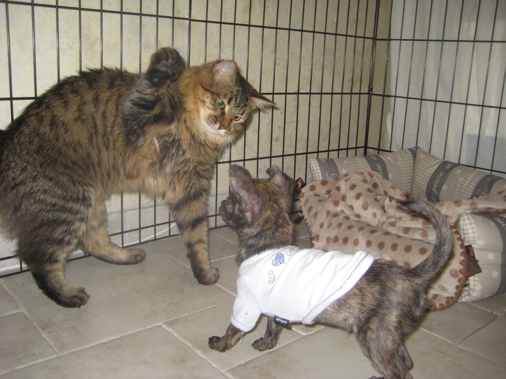 Я тоже когда завела Троя думала,что никогда в жизни не оставлю их одних,но это временное и проходит))А котик и в вашем присутствии коготочками может задеть,они же очень острые,поэтому в целях безопасности лучше состричь.:wink:
