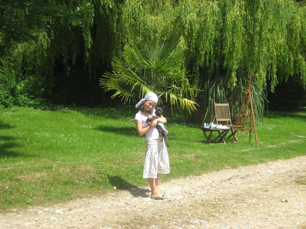 Бонечка уже подустал отдыхать: поиграть вволю не с кем, в некоторые музеи не пускают с собаками - приходится сидеть одному в машине. Вот сегодня сдали нервы - у усадьбы Клода Моне в Жеверни, опять оставили одного в машине, как какого-нибудь сторожевого пса, конечно для машины нашли тенек и приоткрыли окна (очень жарко), но Боня посчитал, что ехать в такую даль и даже не "отметиться" у знаменитего пруда с кувшинками - это уже слишком. Нас вернувшихся к машине, ожидало сначала сильно напугавшее зрелище - человек семь туристов столпившихся вокруг нашей машины и заглядывающих в окна. Как выяснилось Бонечка заливался ,"ругательствами" в адрес угнетателей с речью типа "свобода попугаям!" Его ничуть не смутил наш приход, скорее это выглядело как "Посмотрите, люди! Вот эти тираны!" Так что с поездками решили завязывать (честно говоря, и сами подустали) будем курсировать от дома к пляжу...