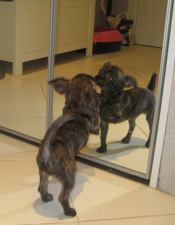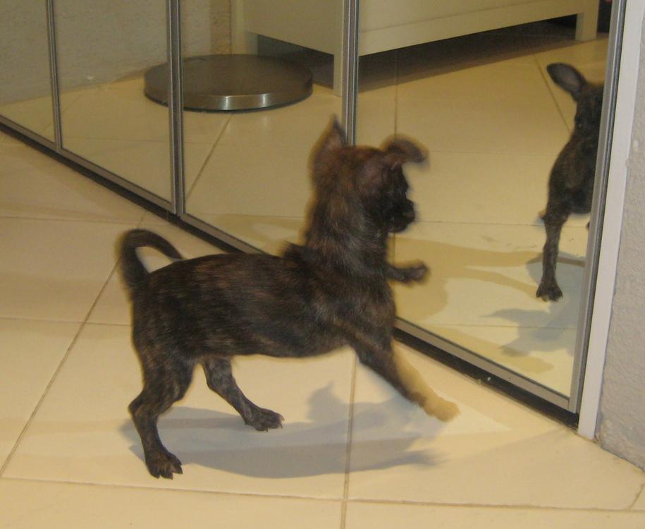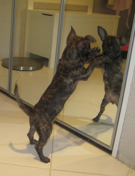 Бонечка сегодня в зеркале обнаружил совершенно очаровательного чиха, был безумно рад, продемонстрировал все что он умеет - гавкать, крутиться на месте - и оказалось, что тот умеет тоже самое - Бониному восторгу не было предела! Вот только с догонялками не сложилось..
