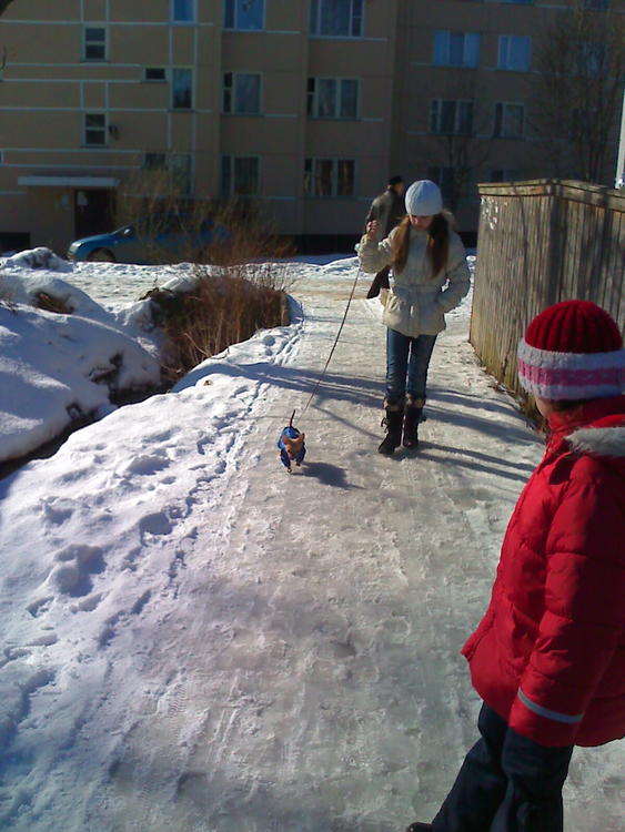 Ух ты! Гуляет прямо как взрослый! А гдеж Вы столько снега в Питере нашли? Давно фотографировались?