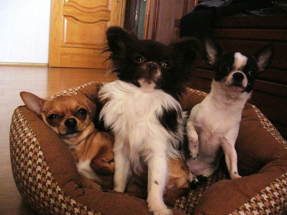 Прелестные собики! А лохматик вообще на папильона похожа, только костяк чихуашный, а окрас и шерсть, - так точно! Но, что хотите со мной делайте, а я в черно-белого зверя влюбилась! Она самая очаровательная! Я, конечно, знаю, что Рози тут самая титулованная девушка, но все равно... :smile: