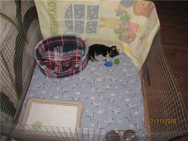 А вот такой у нас домик. На "дела" на пелёночке внимание не обращайте, пожалуйста. :smile: Хотя нет! Обратите внимание - она у нас умничка! Промахнулась всего пару-тройку раз и то только тогда, когда лоточек вне зоны досягаемости оказался. :smile:
