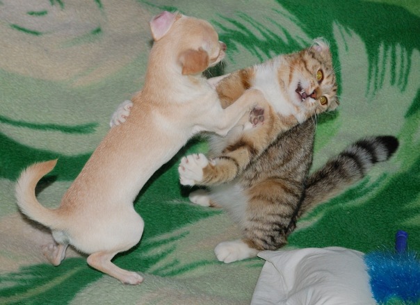 Киска не наша, родственников, иногда ходим в гости, Тишка его обожает, только странные игры у него, коту все время попу подставляет..))