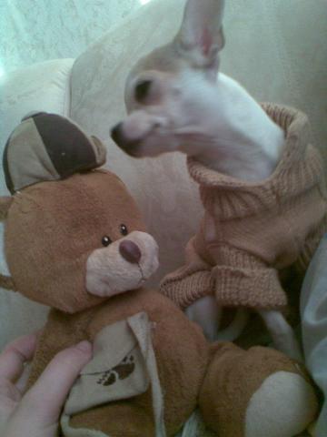 Радость от появления Фаньки, граничила с ужасной болью, и грустью. Дело в том, что она не первая моя собака, до неё был мальчик - Русский Той, но, к сожалению, пришлось его отдать в питомник, (метил всё что его окружало) :confused: , возможно от него уже намечается первое потомство (ттт, чтоб не сглазить).