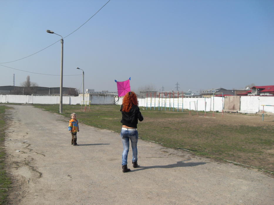 Для запускания змея главное условие - ветер. Если есть ветер, то можно просто стоять на месте и змей будет летать. А сегодня ветра почти не было :cry: Пришлось бегать туда сюда... Набегались так, что домой приползли на четвереньках...
