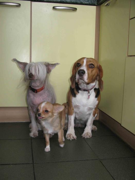 Йоко убираю сразу после еды. а то пролезает у Рады под животом, встает между ее передними лапами и норовит перехватить кое-что еще.