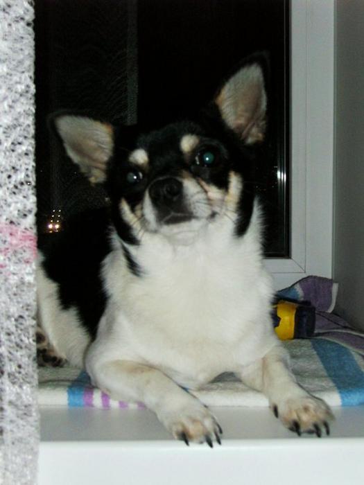 Недавно наш Бинго стал прислушиваться к звукам в общем коридоре. Когда кто-то идёт из нашей семьи, что интересно, он не лает. А если кто-то ходит из соседей или совершенно чужой-он начинает возмущаться! :mats: Раньше такого не было, а сейчас Бина начал уже охранять квартиру и нас! :laduh: Встаёт в боевую позу-кладёт хвост на спину, навостряет уши и слегка расставляет задние лапы-и звонко лает и рычит! :laughing: