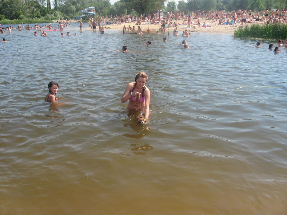 Для Бины брали ссобой миску, воду, печеньки, сухой корм, игрушку. Ставили зонтик, с поводка не отпускали. Он даже оказался замечательным пловцом! :wink: