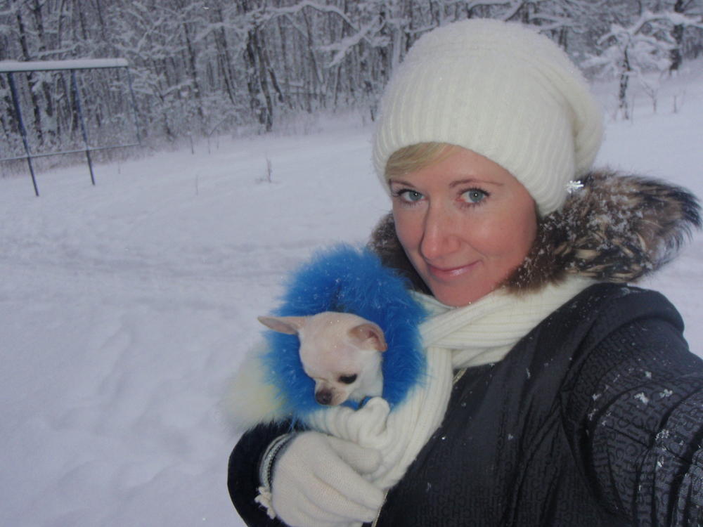 Всем привет! Давно мы тут не объявлялись. В конце лета много болели,потом операция... Ладно, вспоминать не будем; сейчас все ОК!!!Хотим показать наши фотки. Гулять по снегу мы ОЧЕНЬ не любим, а ботиночки носить особо не желаем. Поэтому предпочитаем у меня на руках.