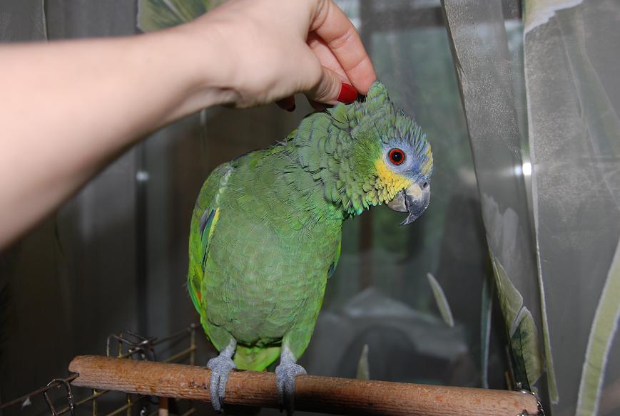 Еще у нас уже 5 лет живет большой попугай -Амазон Рикардо Николаевич )). Рик очень удивлен появлению нового члена семьи и пока очень насторожен, но мы внимательно следим за ними двумя и надеемся, что они подружатся.